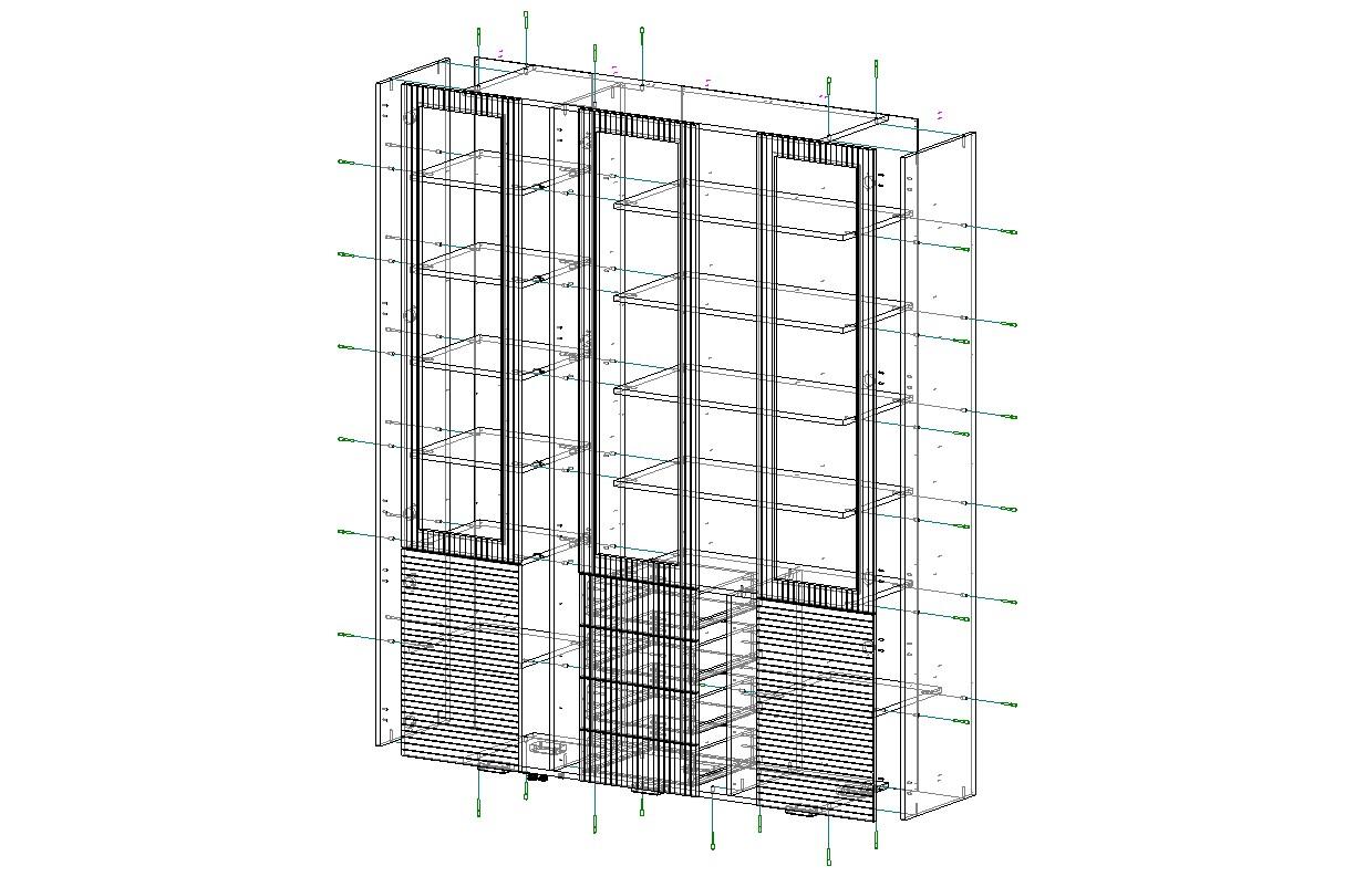 Габариты стеллажа: 1500 х 1675 х 400. Стеллаж производится на заказ.