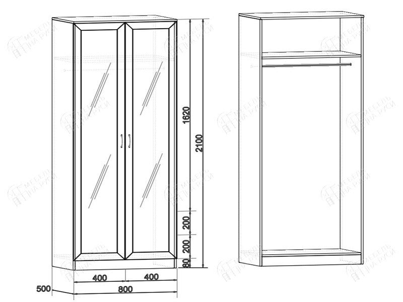 Габариты: 800 х 2100 х 520. Шкаф производится на заказ.